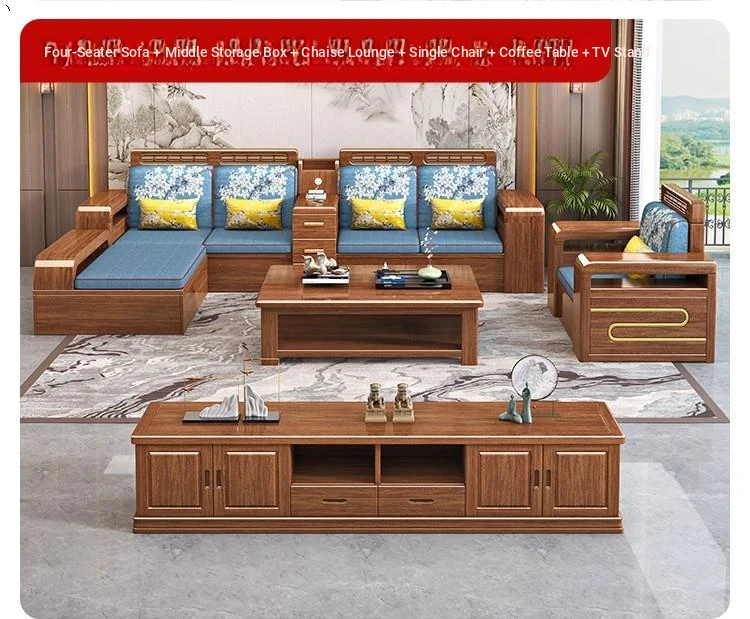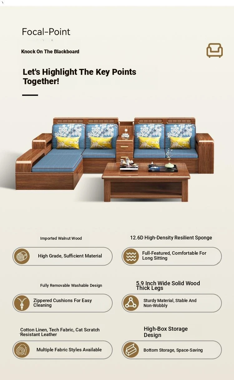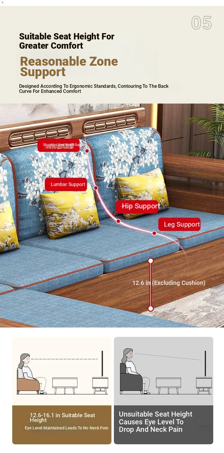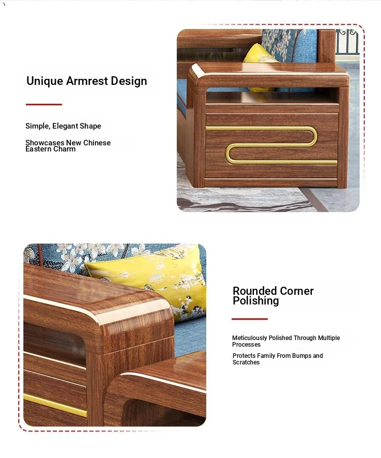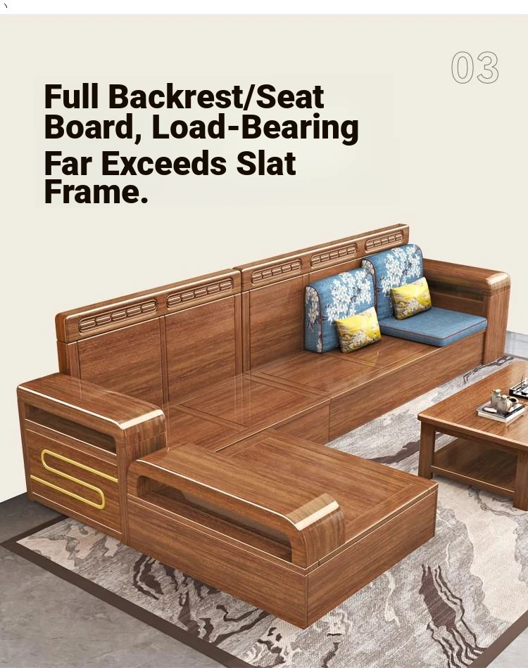 Walnut Solid Wood Sofa - All-wood Storage Chaise Lounge with Corner Design, Perfect for Winter and Summer, Made with Cotton and Linen