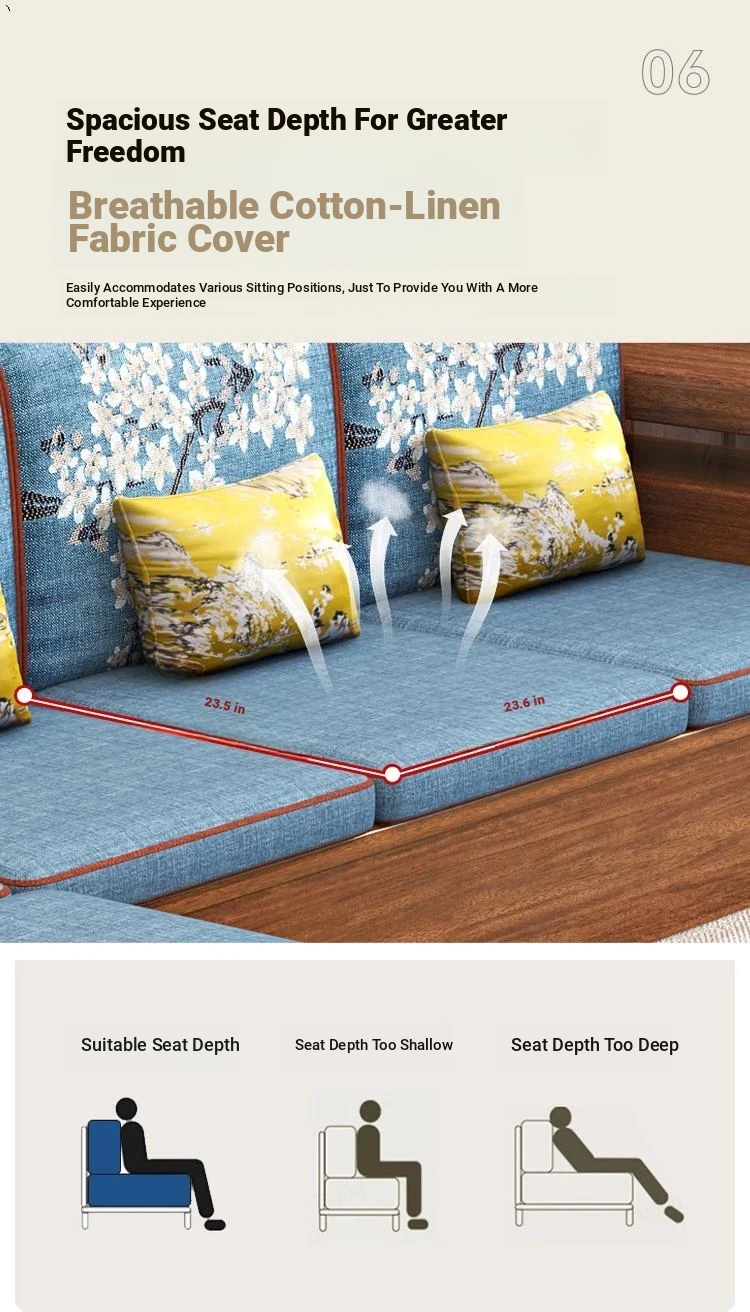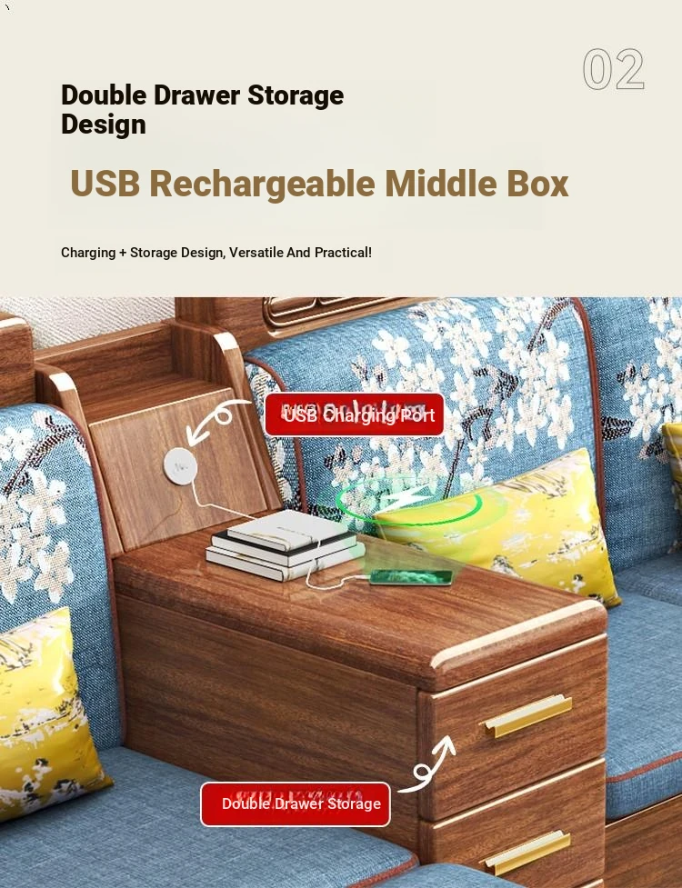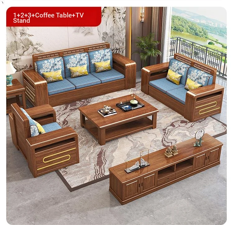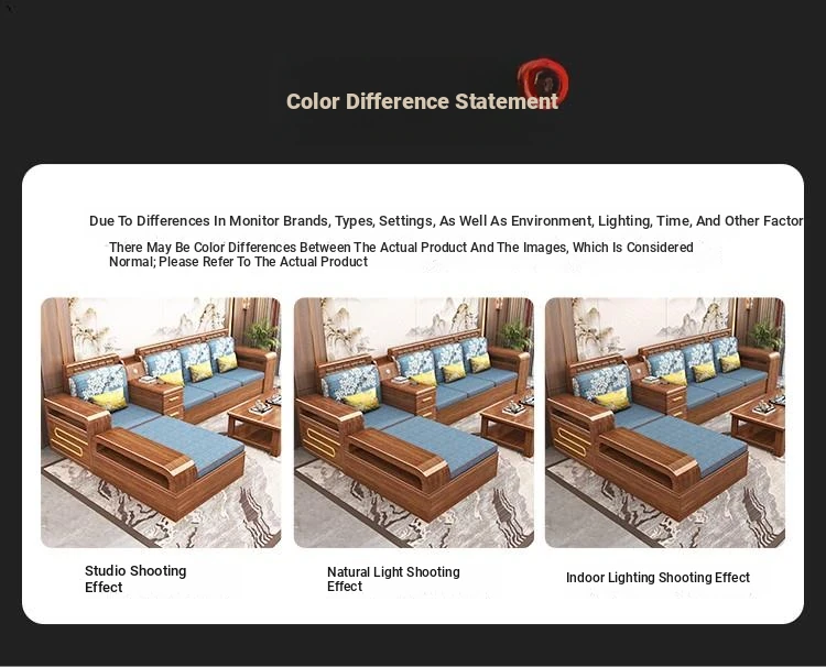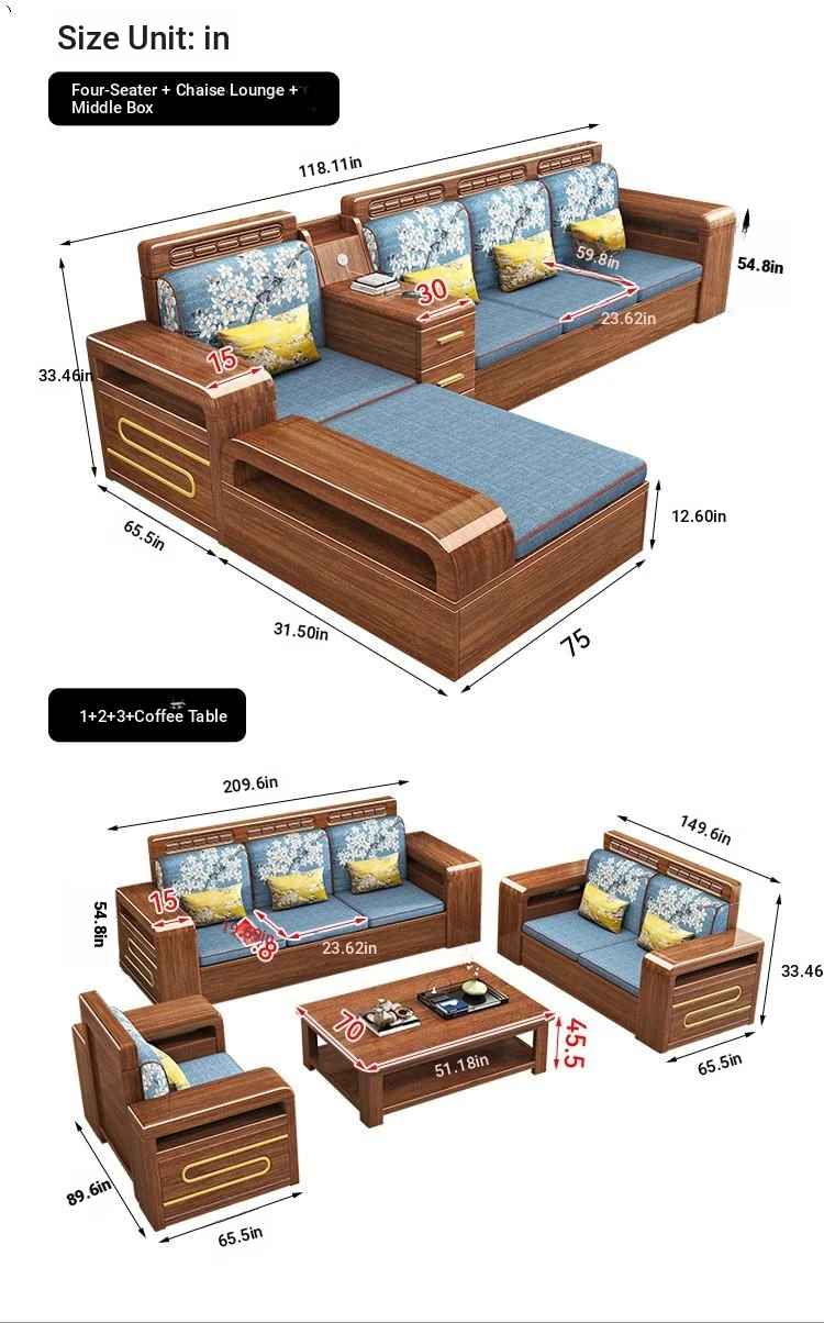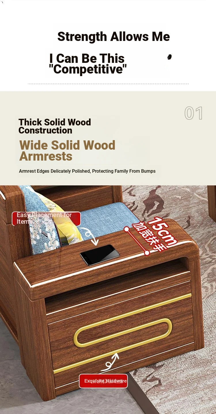 Walnut Solid Wood Sofa - All-wood Storage Chaise Lounge with Corner Design, Perfect for Winter and Summer, Made with Cotton and Linen